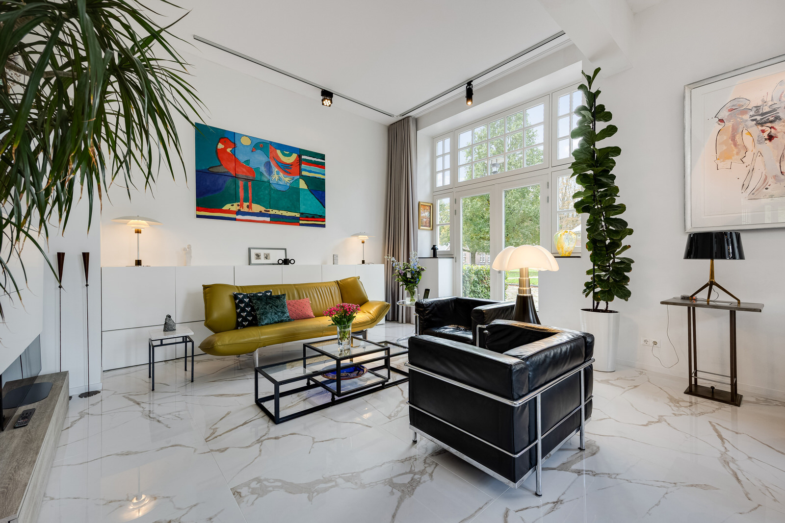 De benedenwoning met drie terrassen, hoge plafonds, een luxe afwerking en een parkeerplaats maakt deel uit van een kleinschalig gebouw met veertien appartementen en is uitermate geschikt voor twee personen die in alle luxe zorgeloos willen wonen in een historische en groene omgeving.